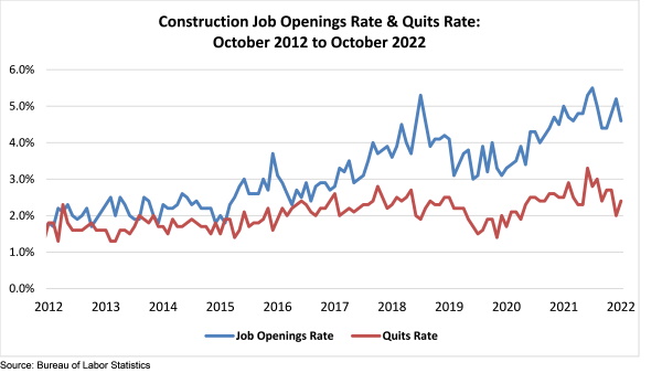"However, there are signs that labor shortages are beginning to abate across all segments,” said Basu. “The economywide share of workers who quit their job fell to the lowest level since May 2021, indicating that the U.S. economy continues to soften as it edges toward likely recession next year. Since many construction segments lag behind the performance of the broader economy by several months, it is conceivable that construction industry job openings will remain elevated for a time even as the U.S. economy weakens. This is reflected in ABC’s most recent Construction Confidence Index, which shows that nearly half of contractors intend to increase their staffing levels over the next six months.”