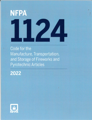 The 2022 edition of NFPA 1124, Code for the Manufacture, Transportation, and Storage of Fireworks and Pyrotechnic Articles, establishes fire and life safety requirements for the manufacturing, transportation, and storage of fireworks, pyrotechnic articles, and any components containing pyrotechnic or explosive compositions.