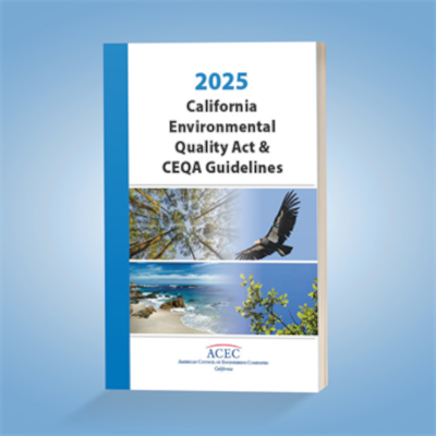 A must have reference for environmental professionals. This book includes all of the statutes of CEQA, as well as the state's CEQA guidelines.